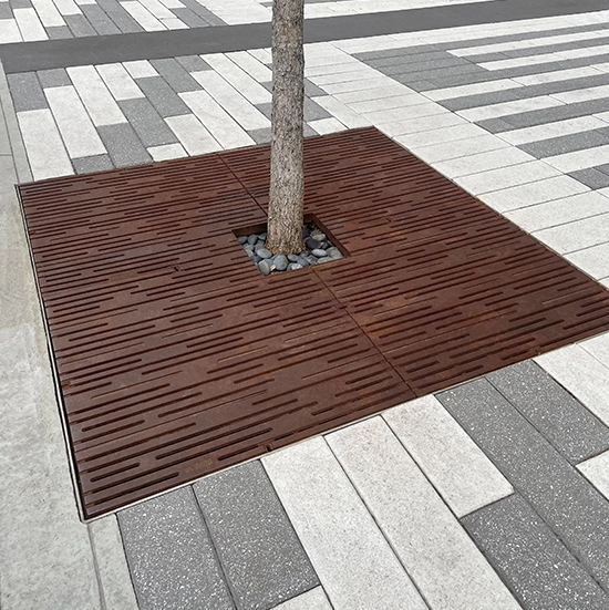 Locust’s popularity reflects a natural pull toward organic patterning in the built environment. Available in a wide range of shapes and sizes, the design lends itself to flexible layouts and can be combined to create custom compositions across a site.