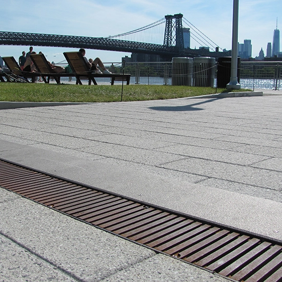 Regular Joe pairs the straightforward function of a traditional slotted grate with the material richness and surface detail of cast metal. It’s a reliable architectural solution for projects that favor clean lines and understated detailing.