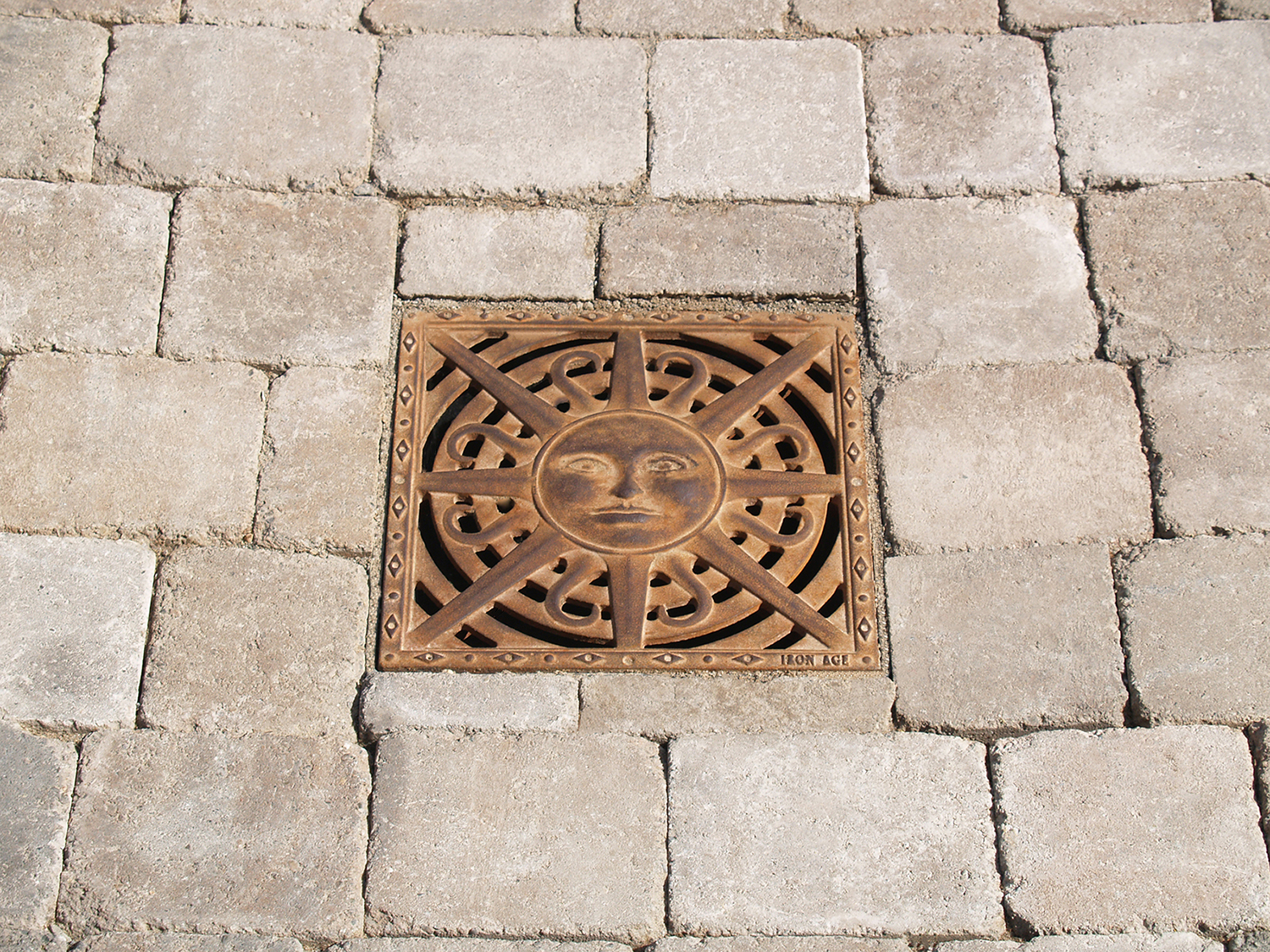 Sun 12″ Sq. catch basin grate, raw cast iron.