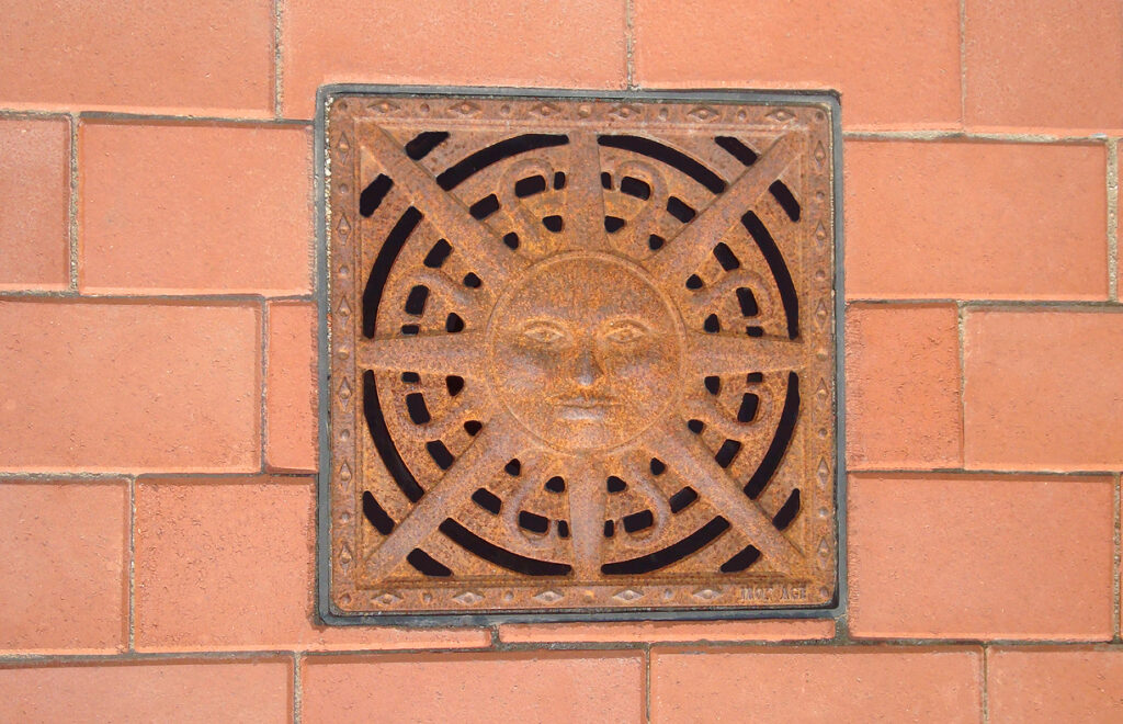 This classic motif, adapted as a catch basin grate, is one of Iron Age’s original patterns. The beautifully sculpted surface showcases the artistry and craftsmanship of our cast metal designs.