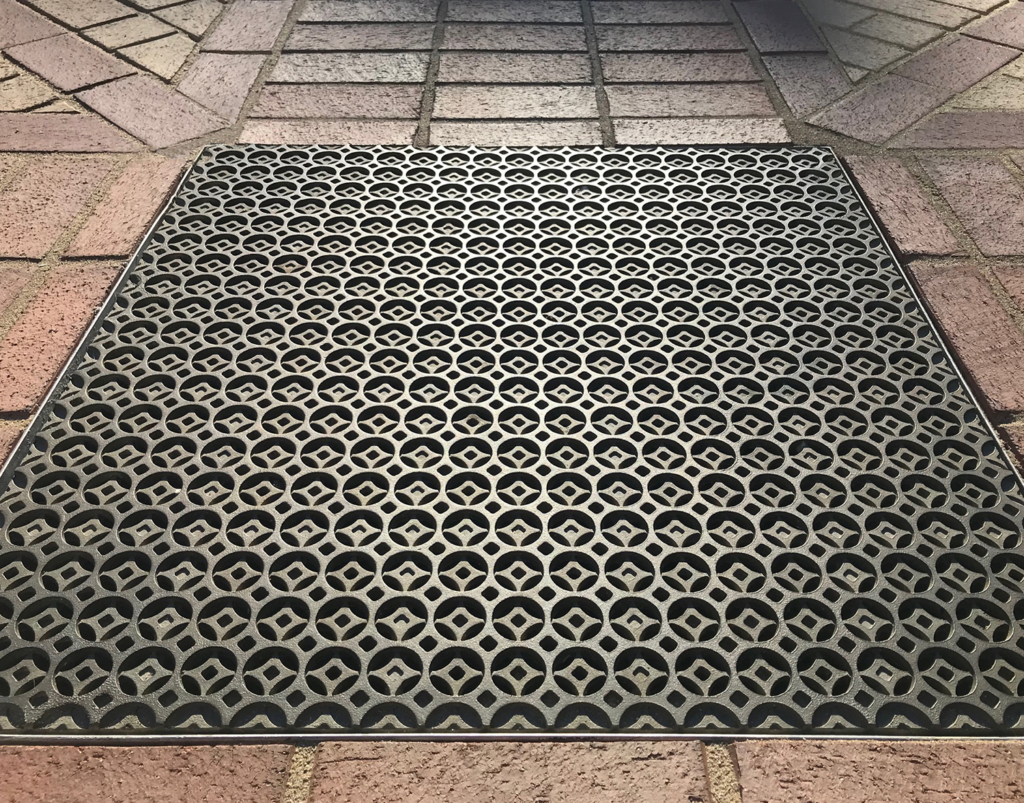 Iron Age produces custom catch basin grates to accommodate unique basin sizes, patterns, and load requirements. Pattern customization allows these functional elements to align with surrounding materials and contribute to a cohesive streetscape design.