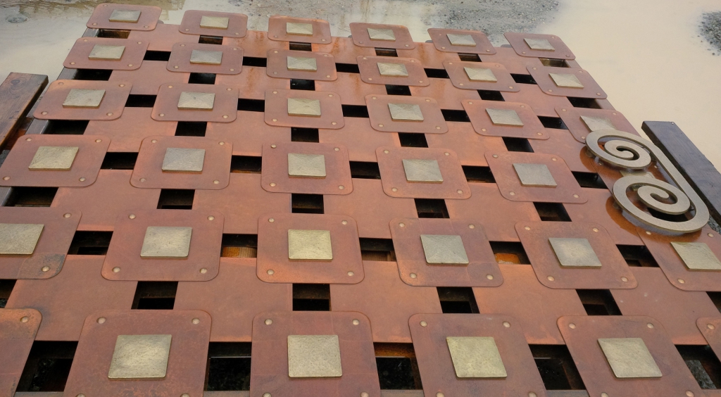 This is our favorite gate! This is made from corten steel, and bronze accents and handle. This gate is installed in Pearl Island, Panama. Hart Howerton, design concept.