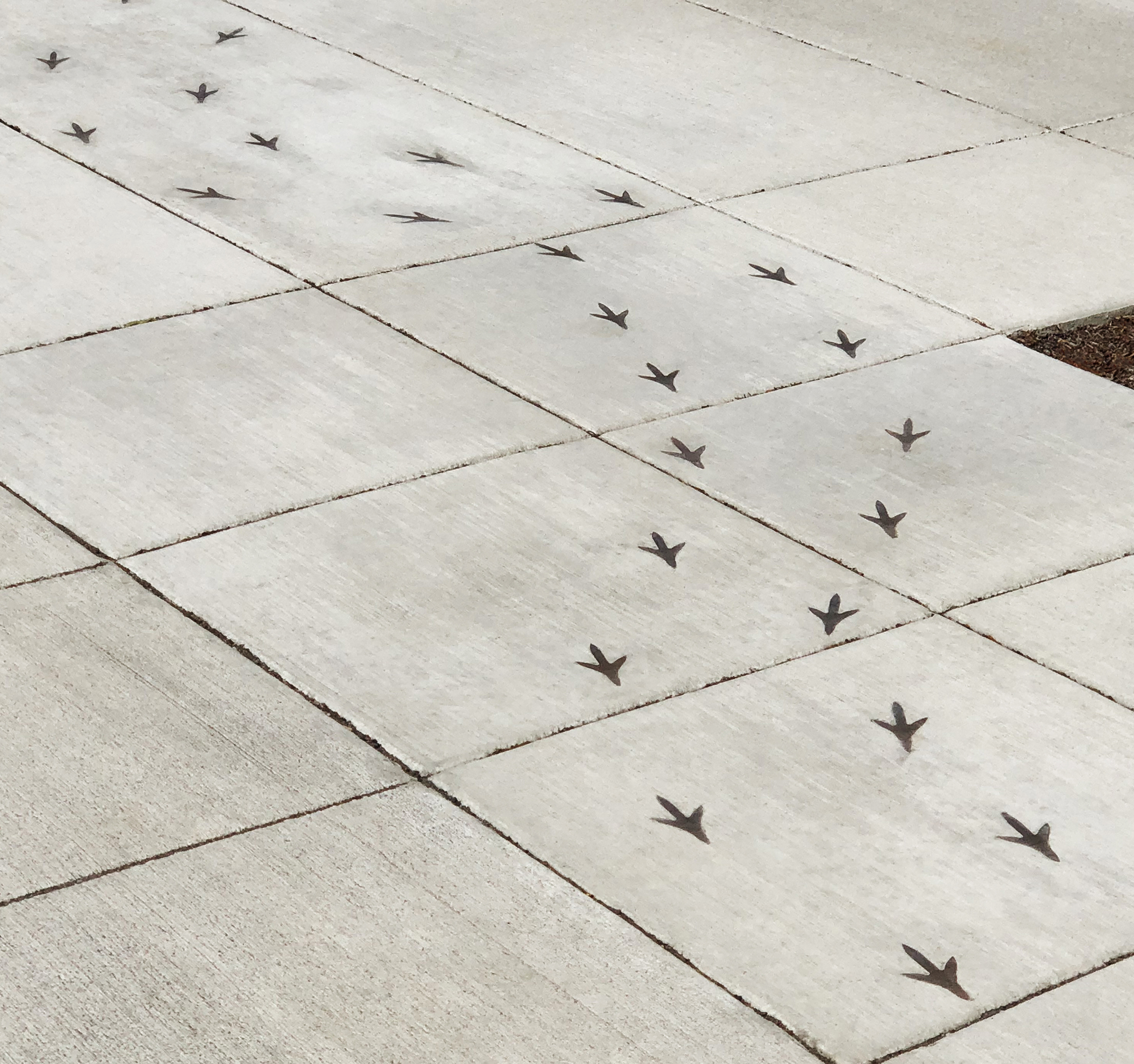 Custom water jet cut footprint with stud on back for embedment, raw cast bronze. PROJECT: 628 Front Street. LOCATION: Issaquah, WA.