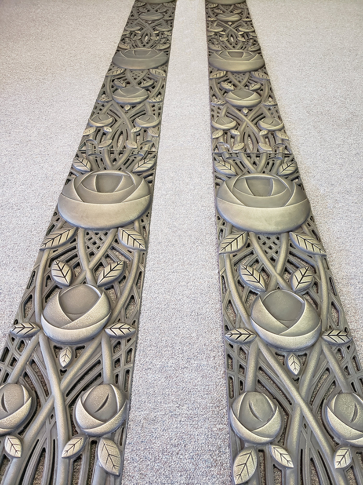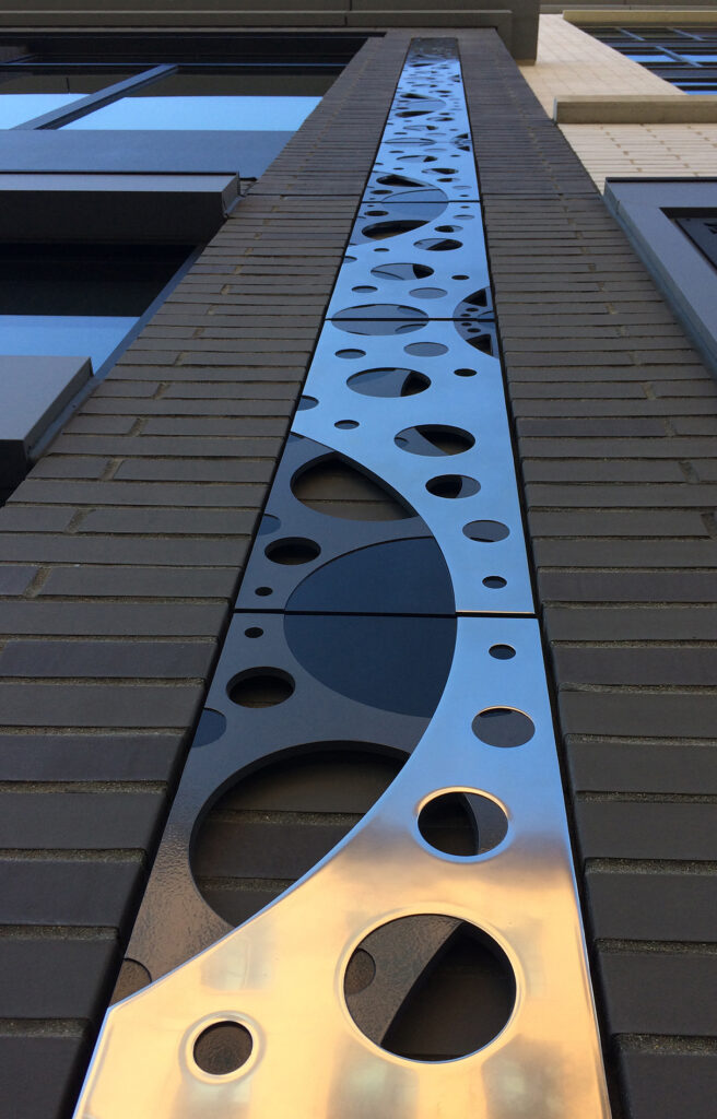 Custom “Rose” panels, cast bronze with patina finish (shown installed in next photo). DESIGN: Foreseer. PROJECT: Pike & Rose. LOCATION: North Bethesda, MD.