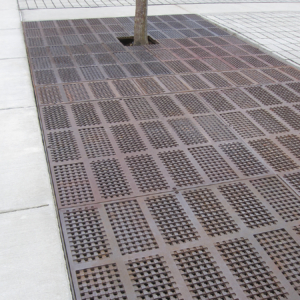 Our Explora pattern features a modular, industrial design motif that lends itself well to unique applications, such as grated walkways, large tree grate arrays and more.