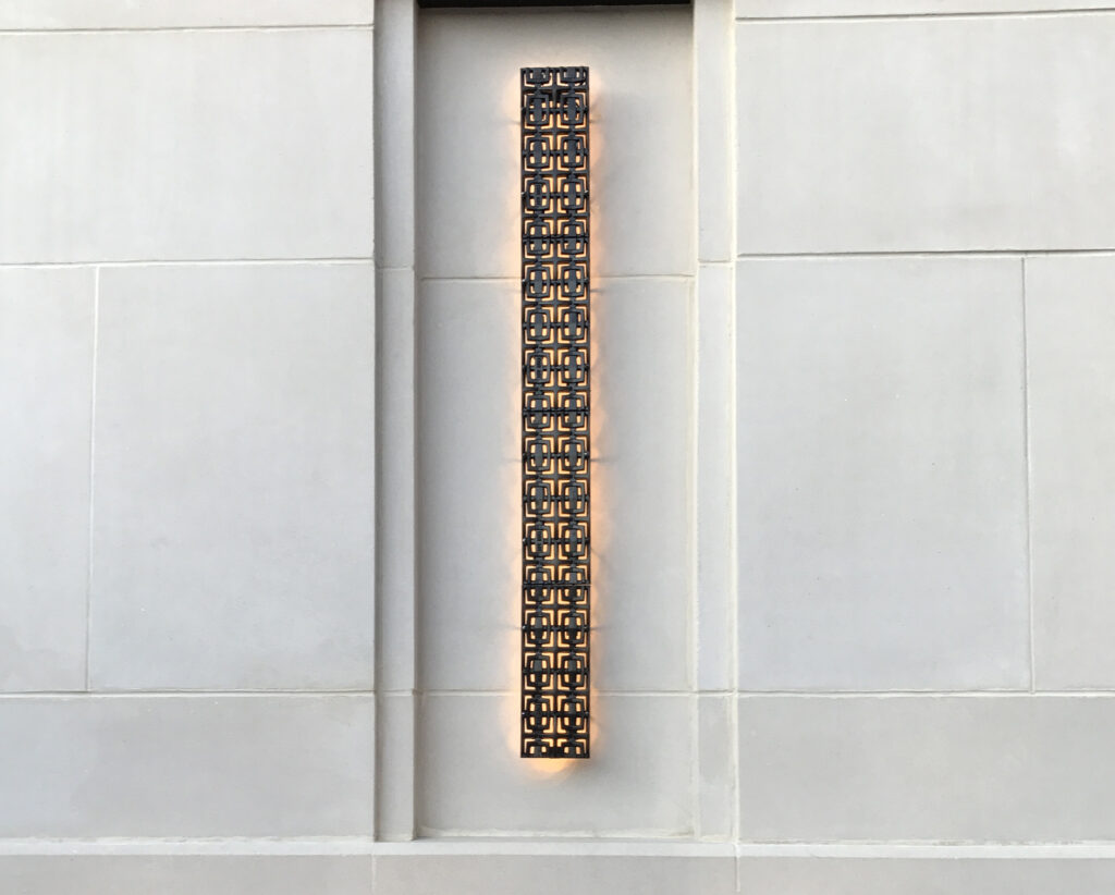 Janis trench grates in cast iron, flush mounted and used as sconces. PROJECT: All Saints School. LOCATION: Phoenix, AZ.