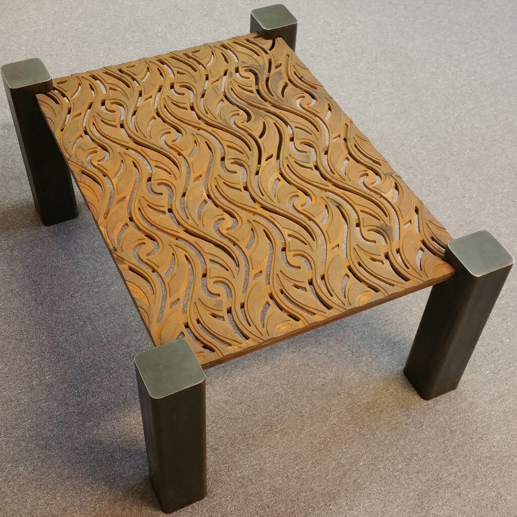 Coffee table made from our cast iron Minnione 26″ x 28″ grate panel.