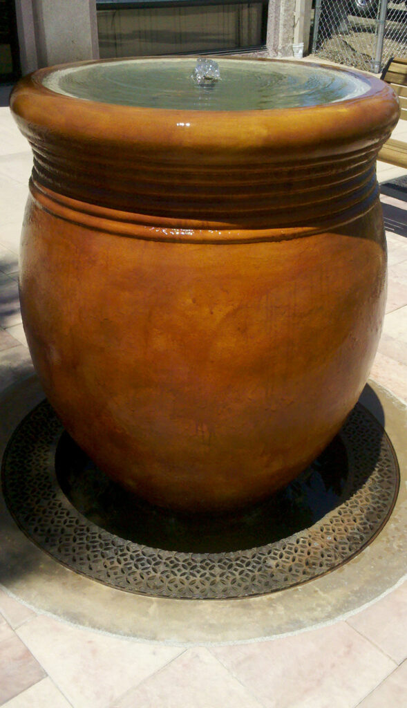 Interlaken 6″ wide radiused trench grate, cast iron with baked-on-oil finish. DESIGN: AECOM-San Diego. LOCATION: Mercado District, Escondido, CA.