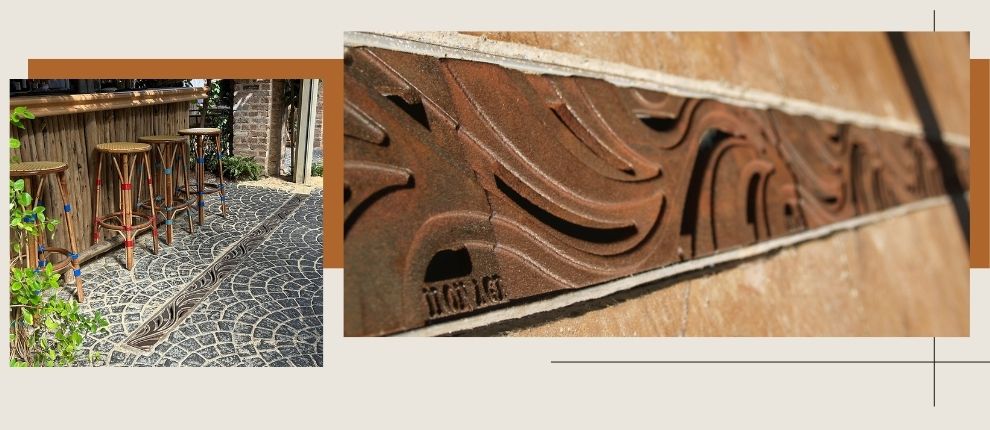 Minnione 5″ x 20″ trench grate, cast iron with baked-on-oil finish. DESIGN: Urban Robot. INSTALLATION: Winmar Construction. PROJECT: Pastis (Restaurant). LOCATION: Wynwood Art District, Miami, FL.