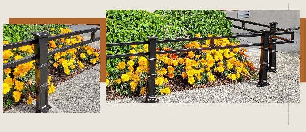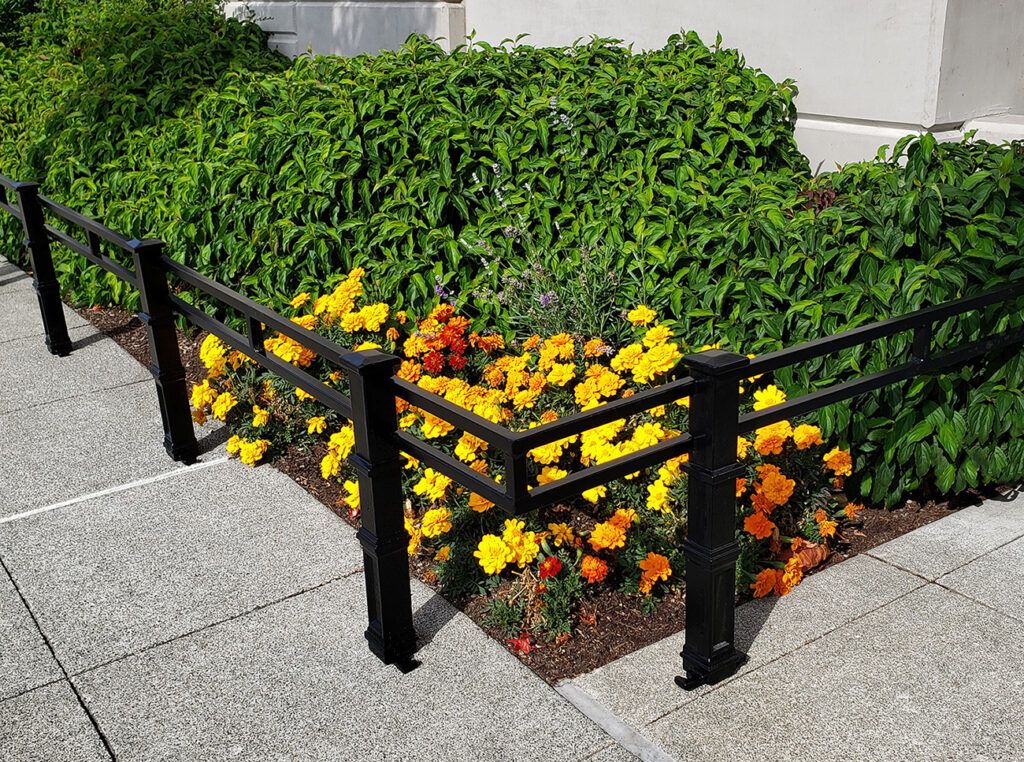 The classic design of Newell’s cast iron posts offers a traditional appeal, while the adjustable-length steel bar rails create dimensional flexibility. You won’t find a more versatile choice for protecting planting areas.