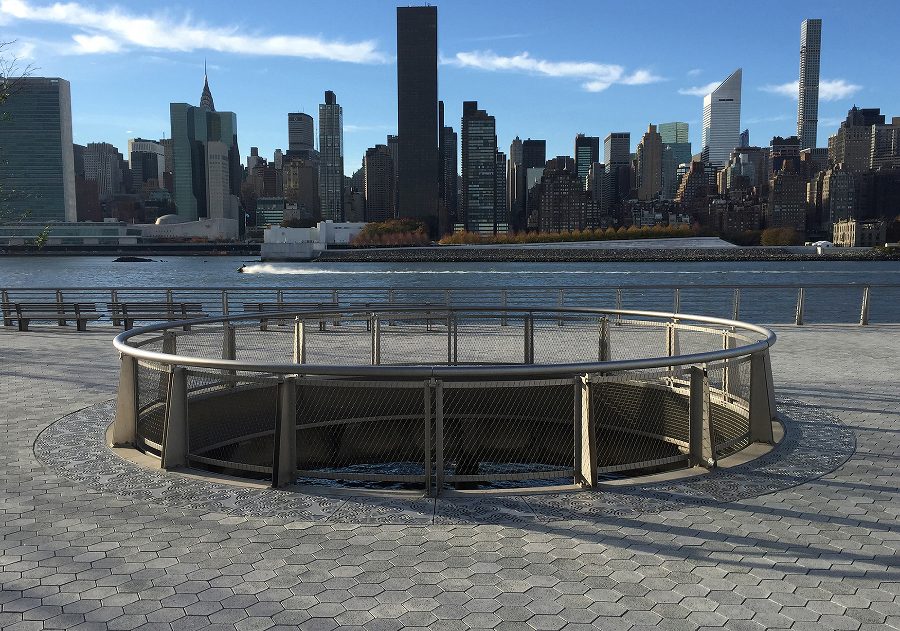 Oblio 9″ radius trench grate, cast iron with baked-on-oil finish. DESIGN: NYC Parks. INSTALLATION: W.A. Gross Construction. PROJECT: Naples Playground . LOCATION: Staten Island, NY.