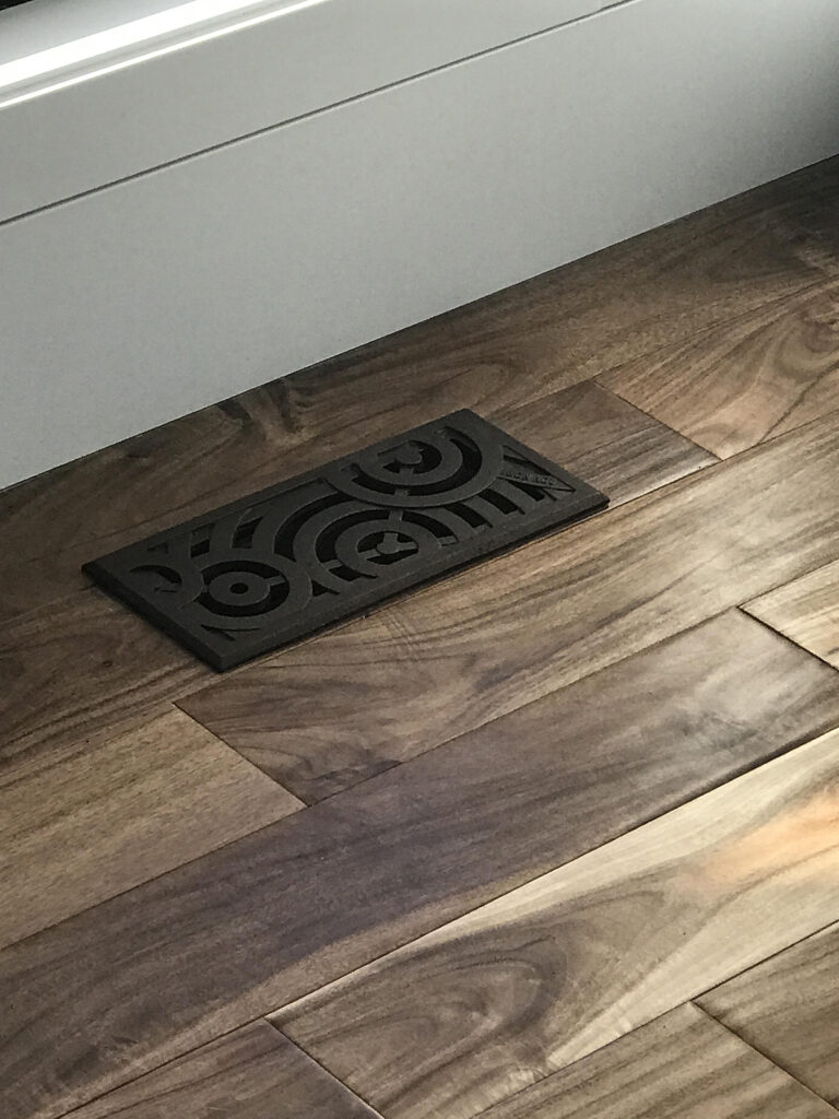 Oblio 4″ x 12″ register covers, cast iron with baked-on-oil finish.