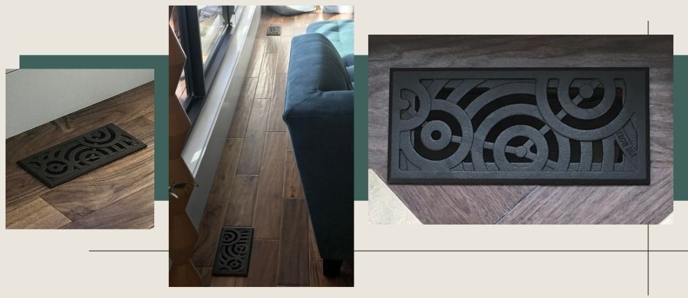 Oblio 4″ x 10″ register covers, cast iron with baked-on-oil finish.