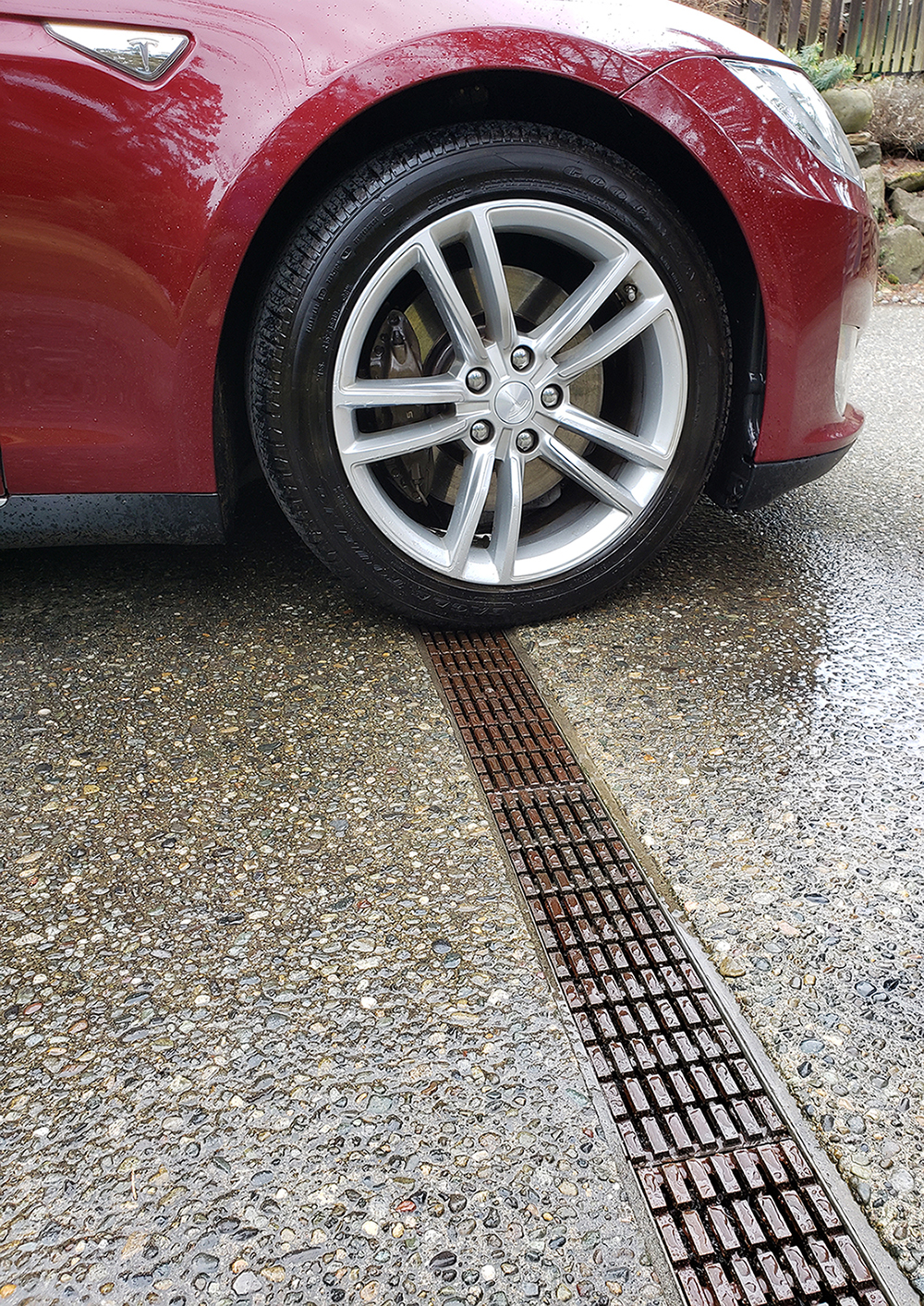 Plex 5″ x 20″ trench grate, cast ductile iron with baked-on-oil finish.