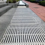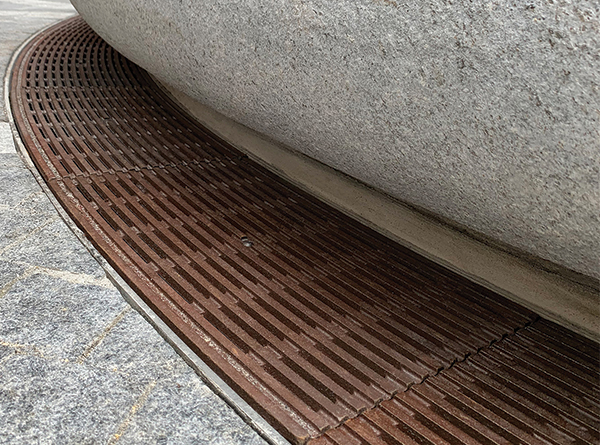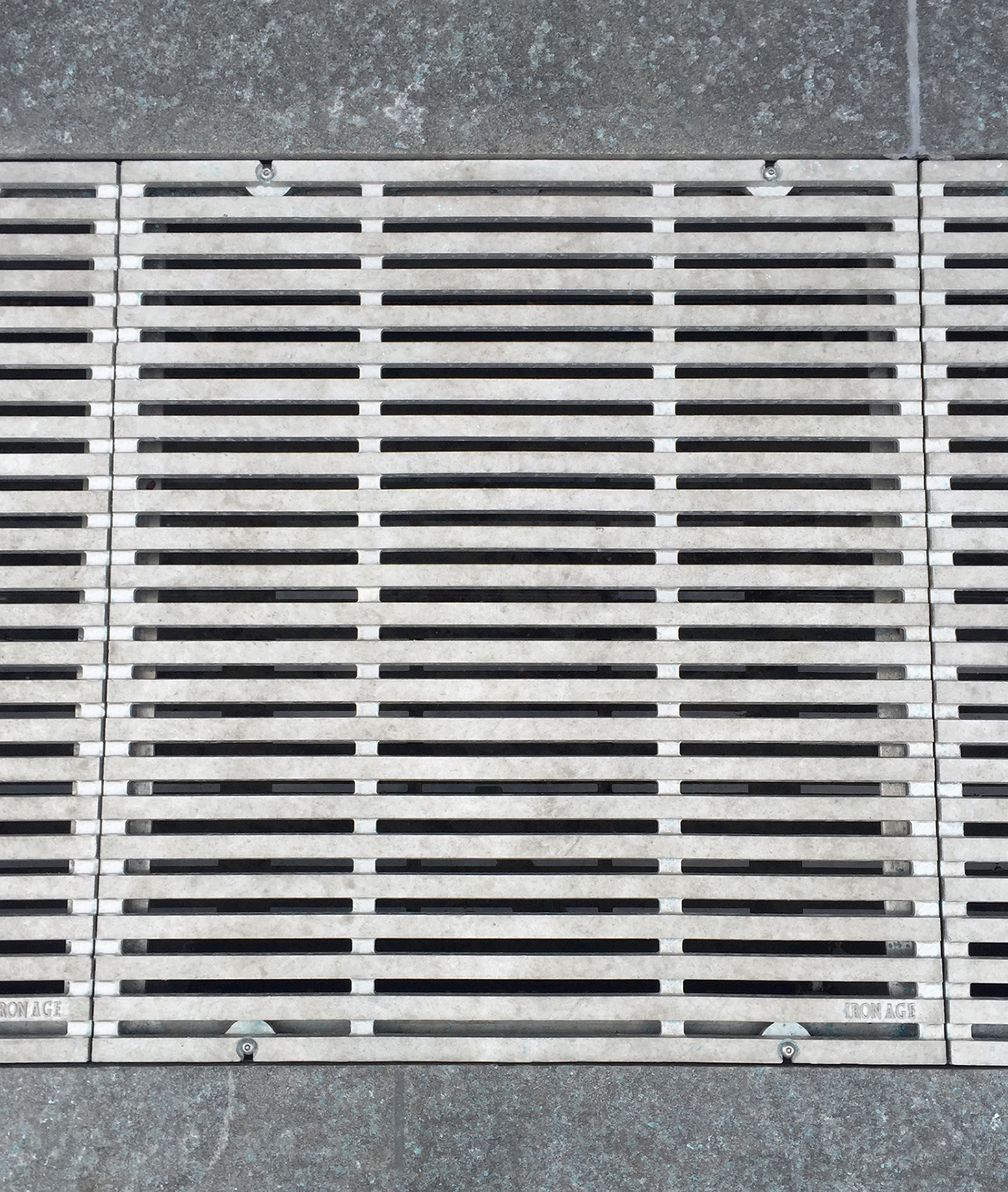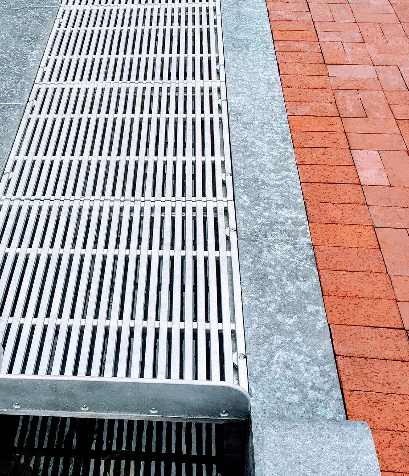 Que 30″ x 33″ trench grate, raw cast aluminum. DESIGN: GGN. PROJECT: 600 Massachusetts Avenue. LOCATION: Washington, DC.