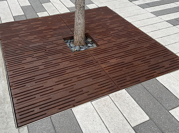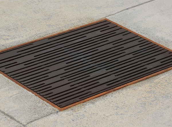 Intermittent breaks in the linear surface not only evoke the precipitation our hometown of Seattle is famous for, but give our Rain grates a clean, sophisticated look and heel-proof design.