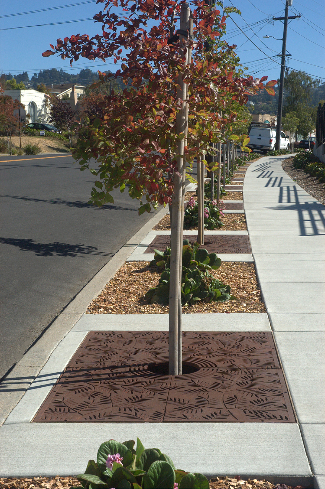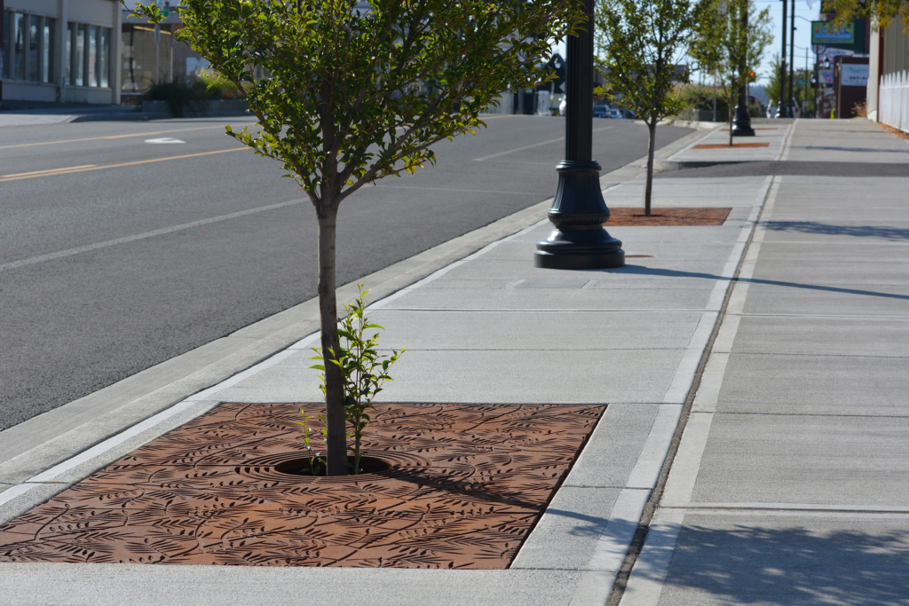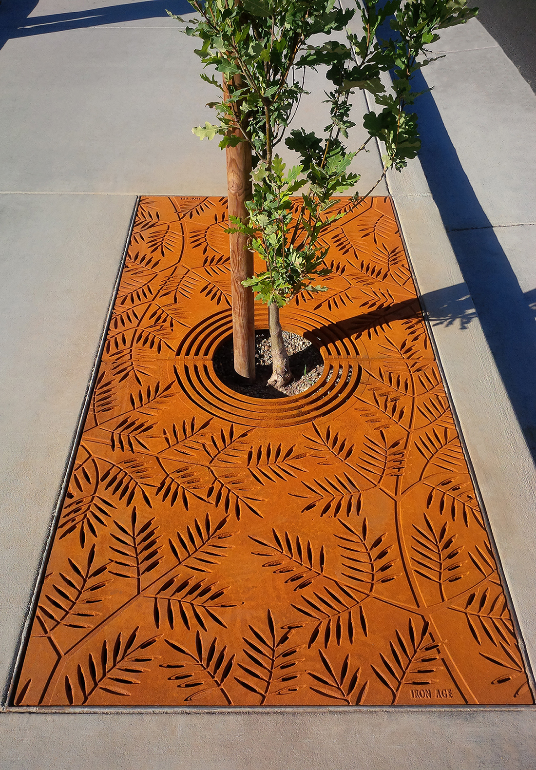 Locust 3′ x 6′ tree grate, raw cast iron. PROJECT: Auburn Streetscape. LOCATION: Citrus Heights, CA.