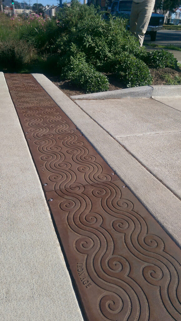 Argo 24″ x 18″, solid, cast ductile iron with our baked-on-oil finish. DESIGN: Partnership between San Francisco Public Utilities Commission and San Francisco Public Works. PROJECT: Sunset Boulevard Greenway. LOCATION: San Francisco, CA.