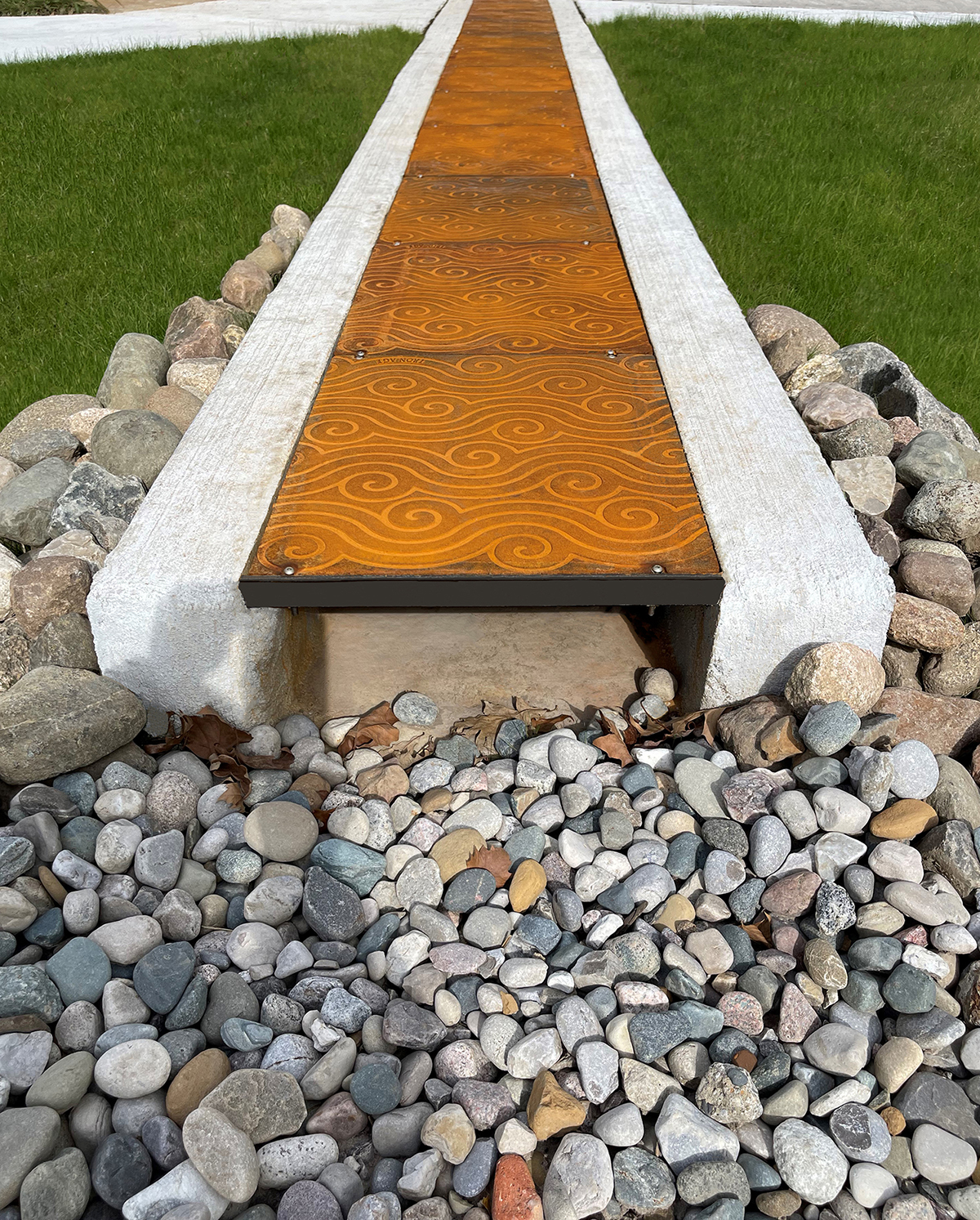 Argo 5″ x 20″ heel proof trench grate, raw cast ductile iron, PROJECT: O’Donnell Lake. LOCATION: Waldorf, Maryland.