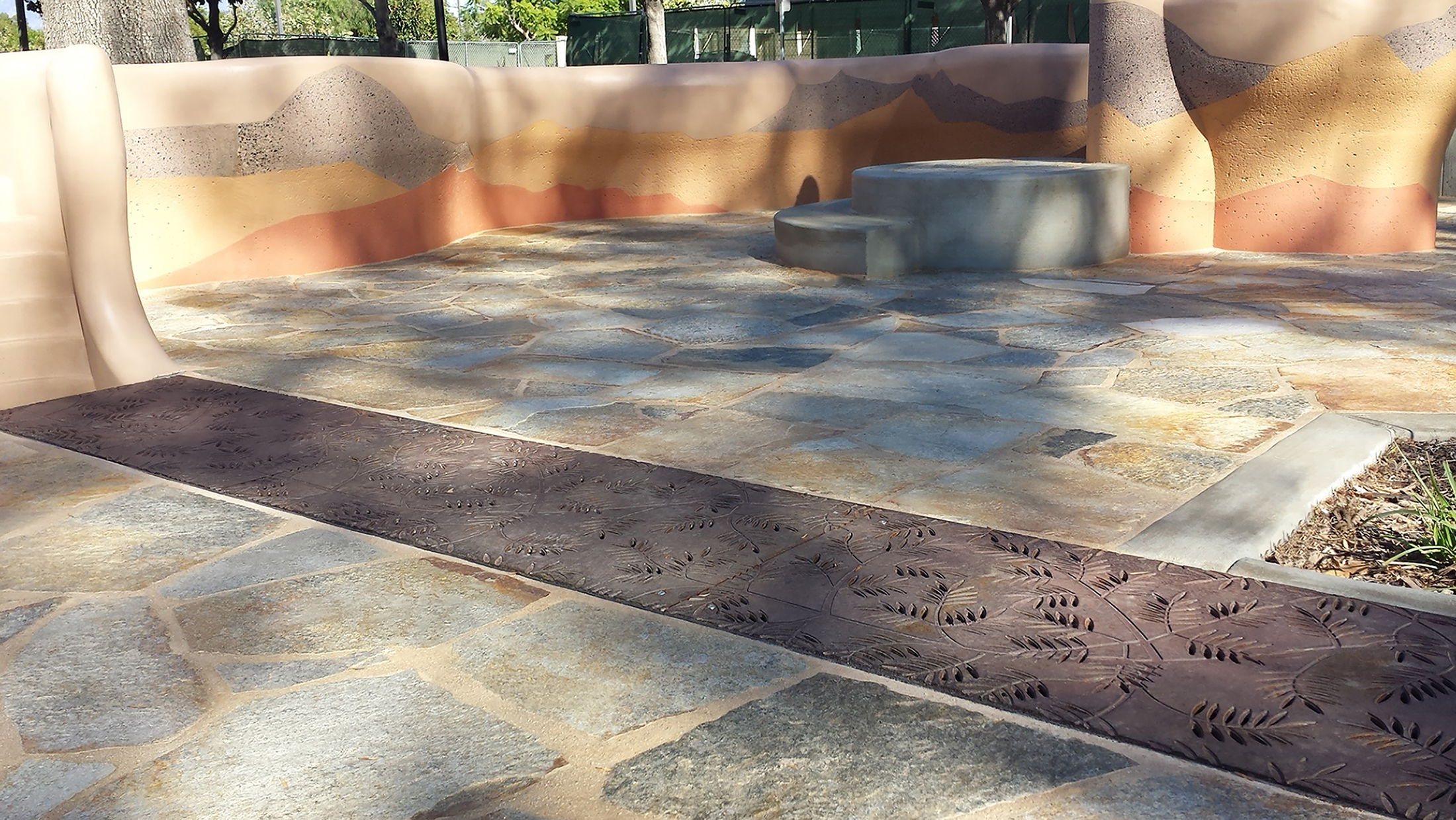 Locust 20″ x 40″ heel-proof trench grate, cast iron with baked-on-oil finish. PROJECT: Conservation Park. LOCATION: Ontario, CA.