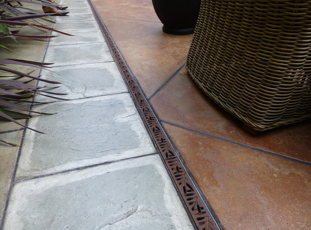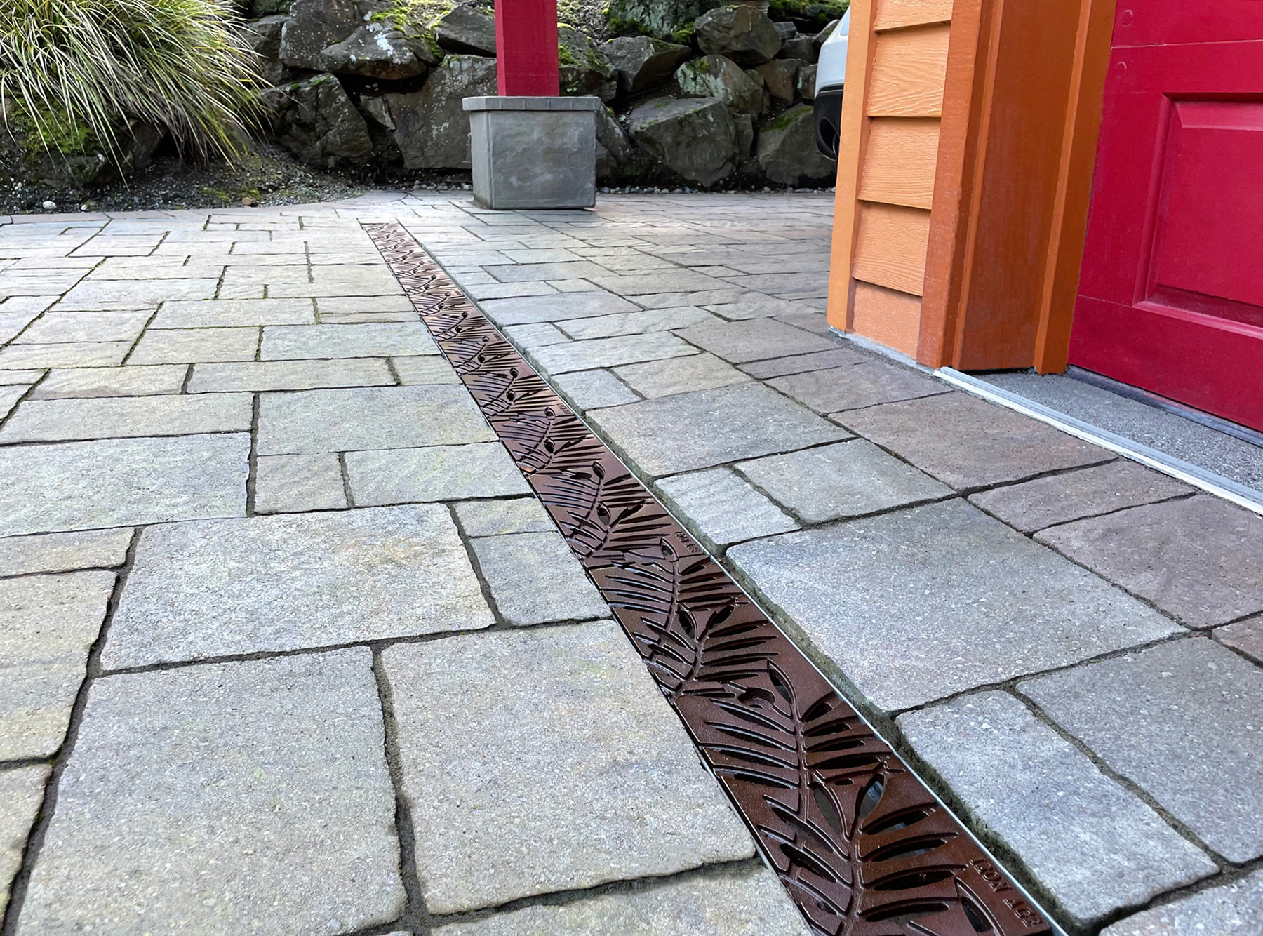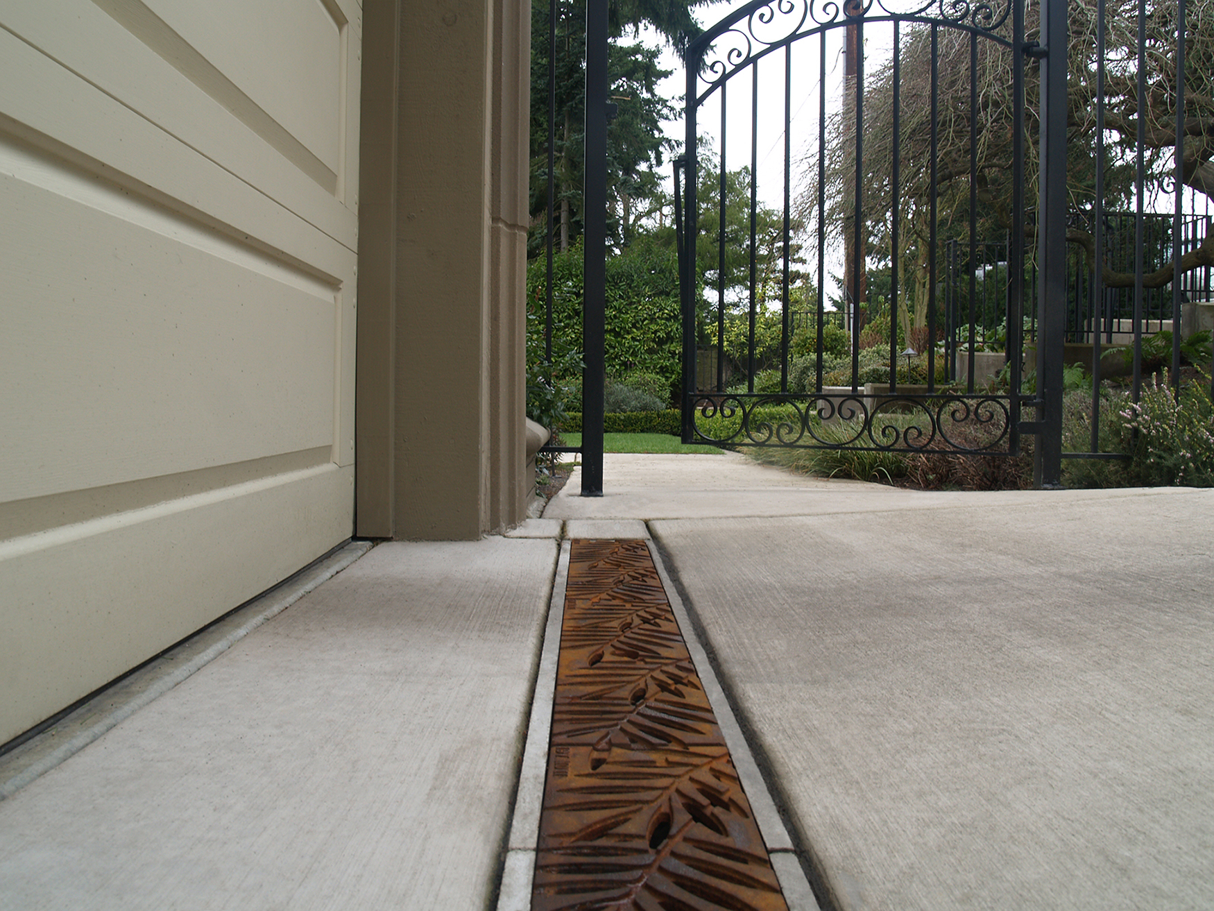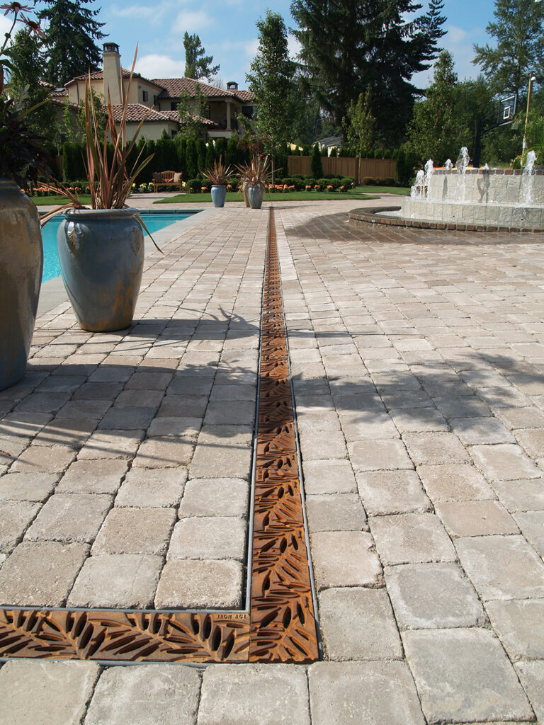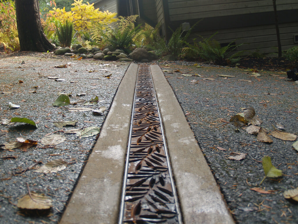 Locust 6″ x 24″ trench grate, raw cast iron. PROJECT: Residential installation. LOCATION: Kirkland WA.