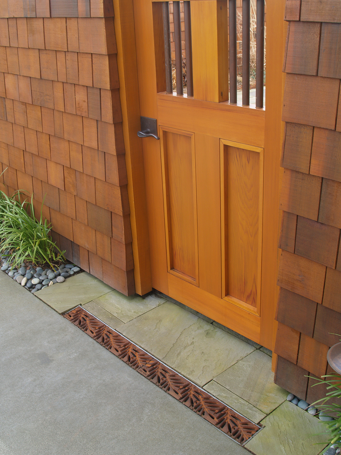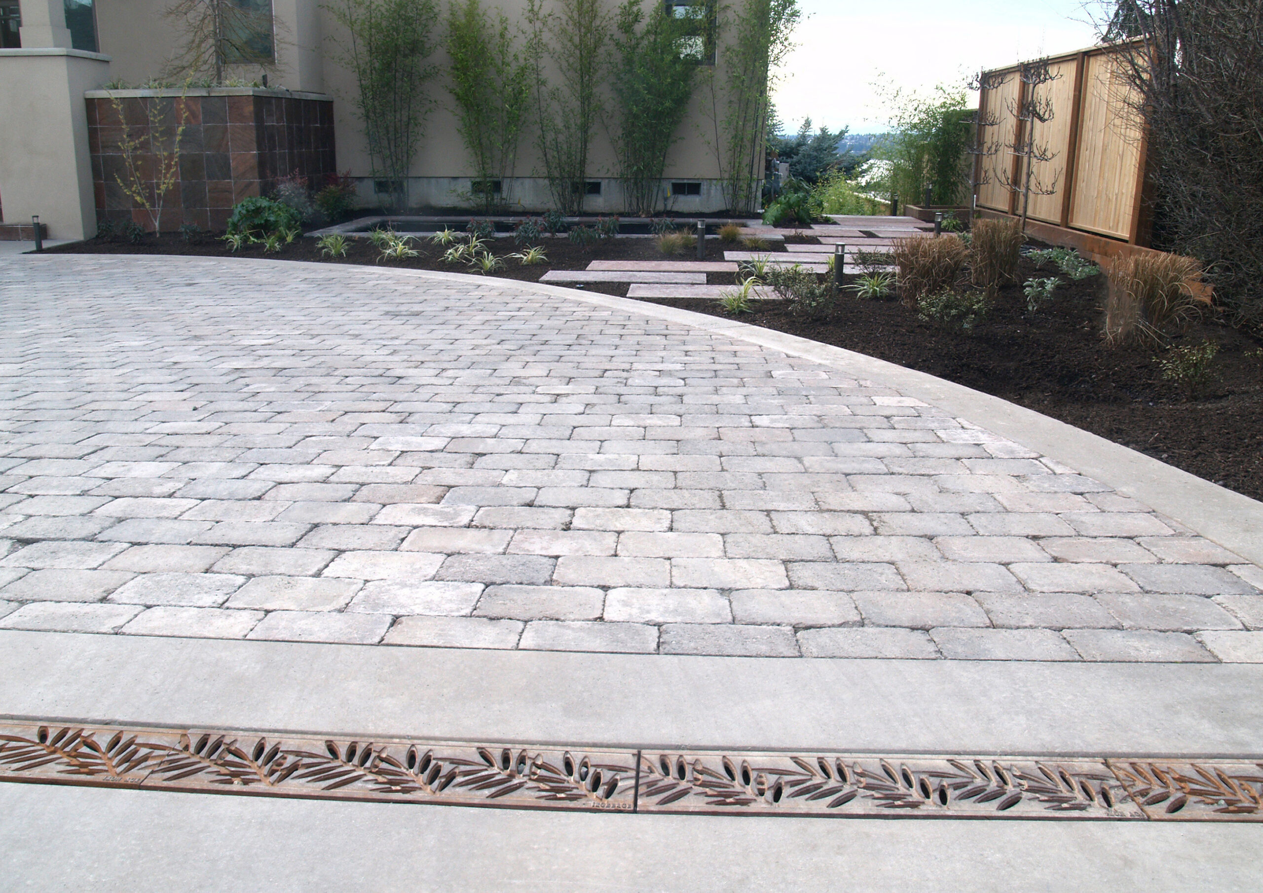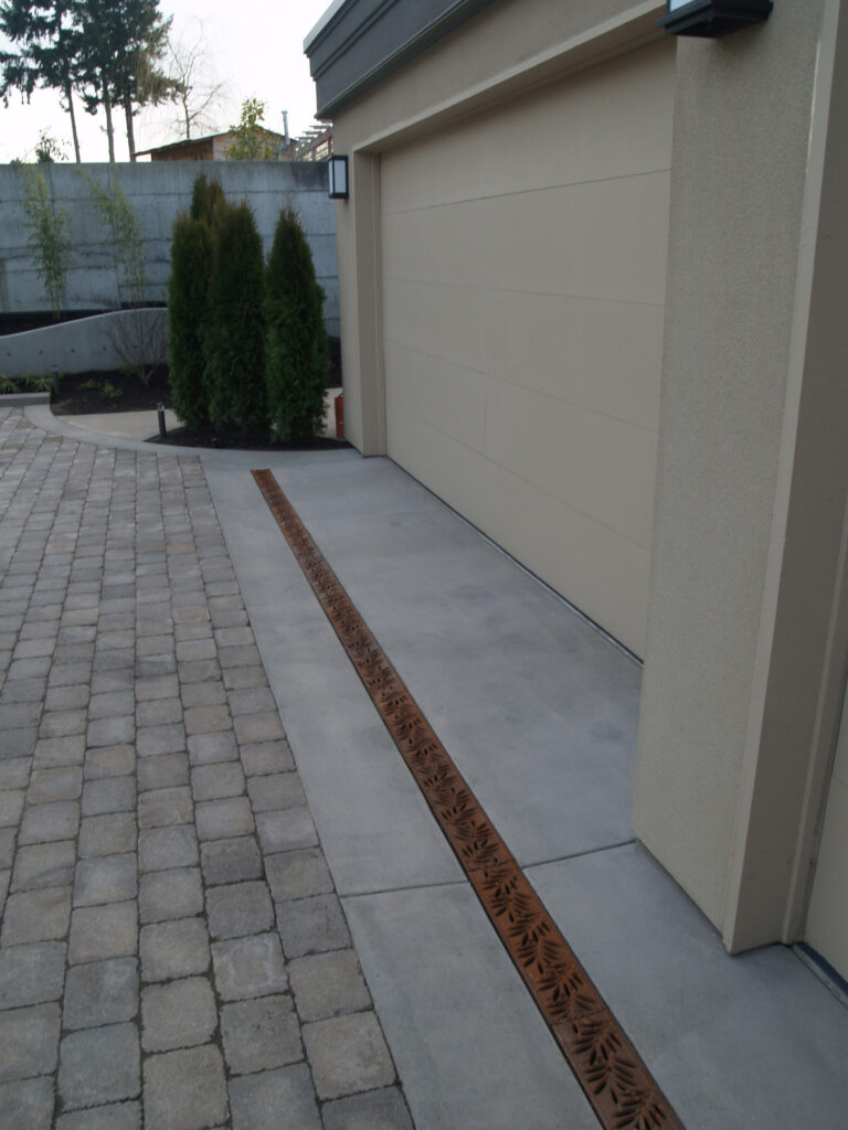 Locust 5″ x 20″ trench grate, cast ductile iron with baked-on-oil finish. PROJECT: Residence. LOCATION: Burien, WA.