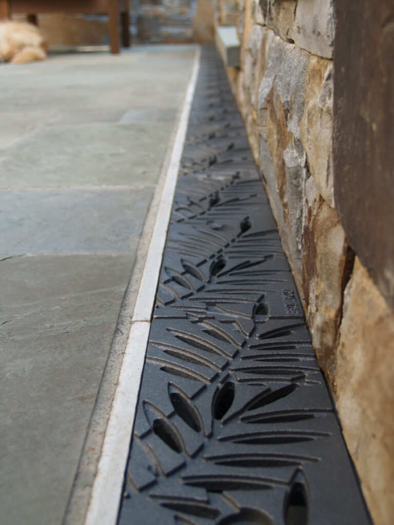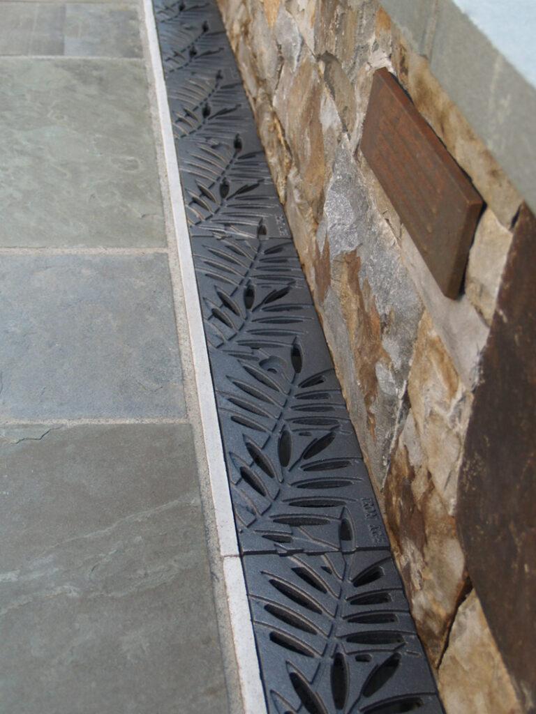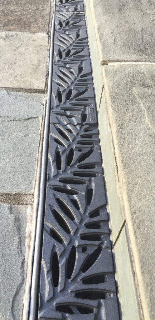 Locust 6″ x 24″ trench grate, cast iron with baked-on-oil finish. PROJECT: Residential application.