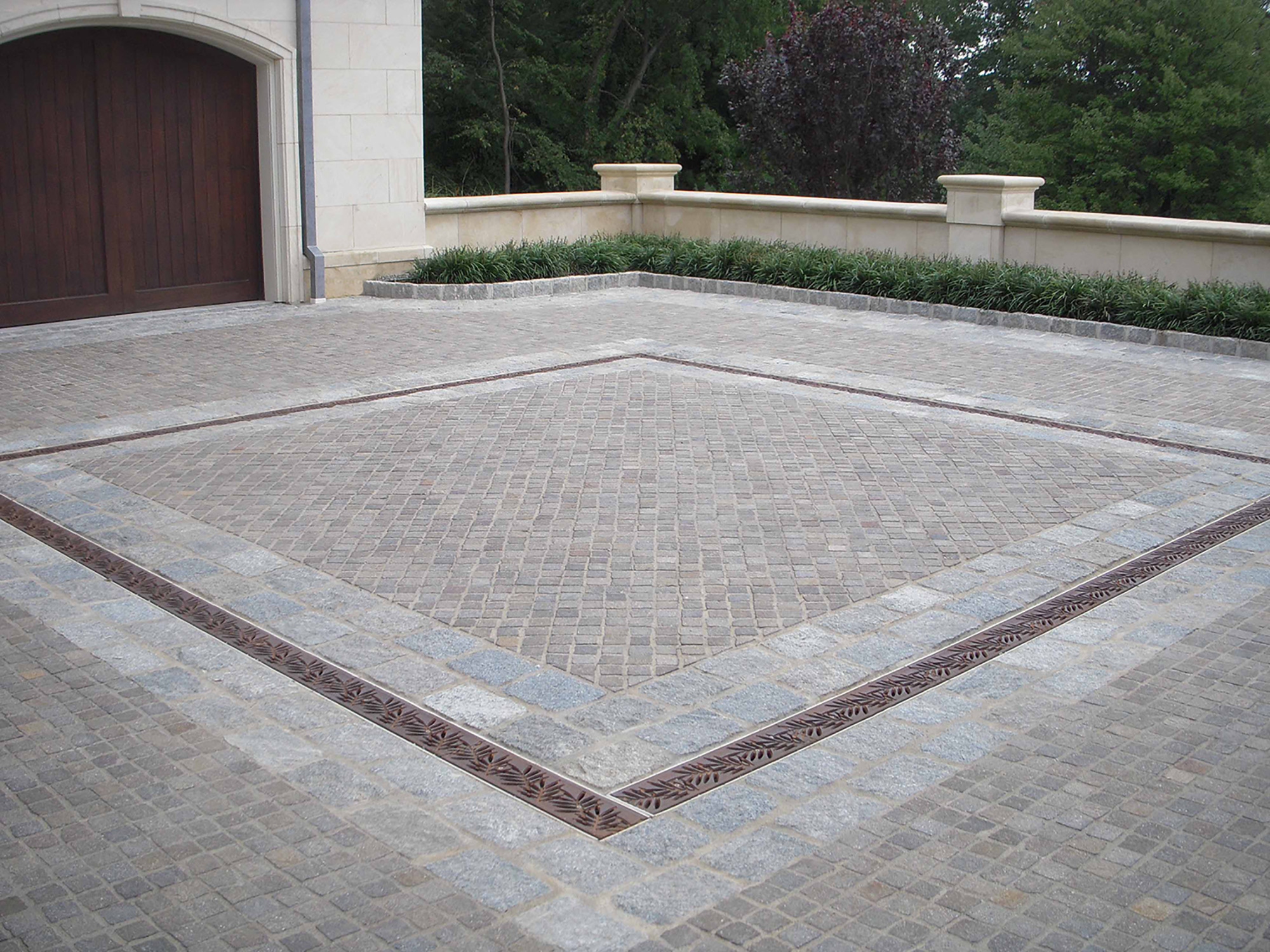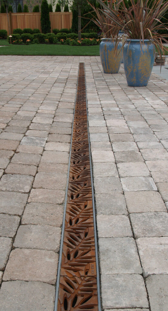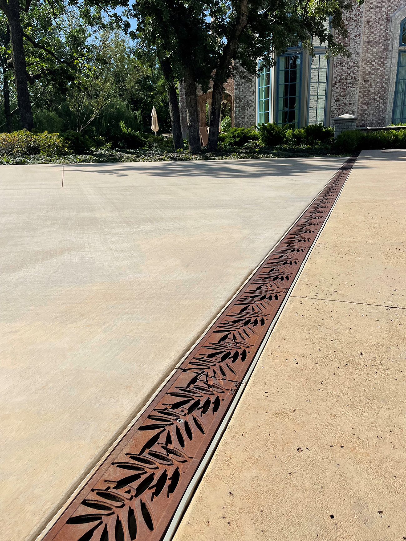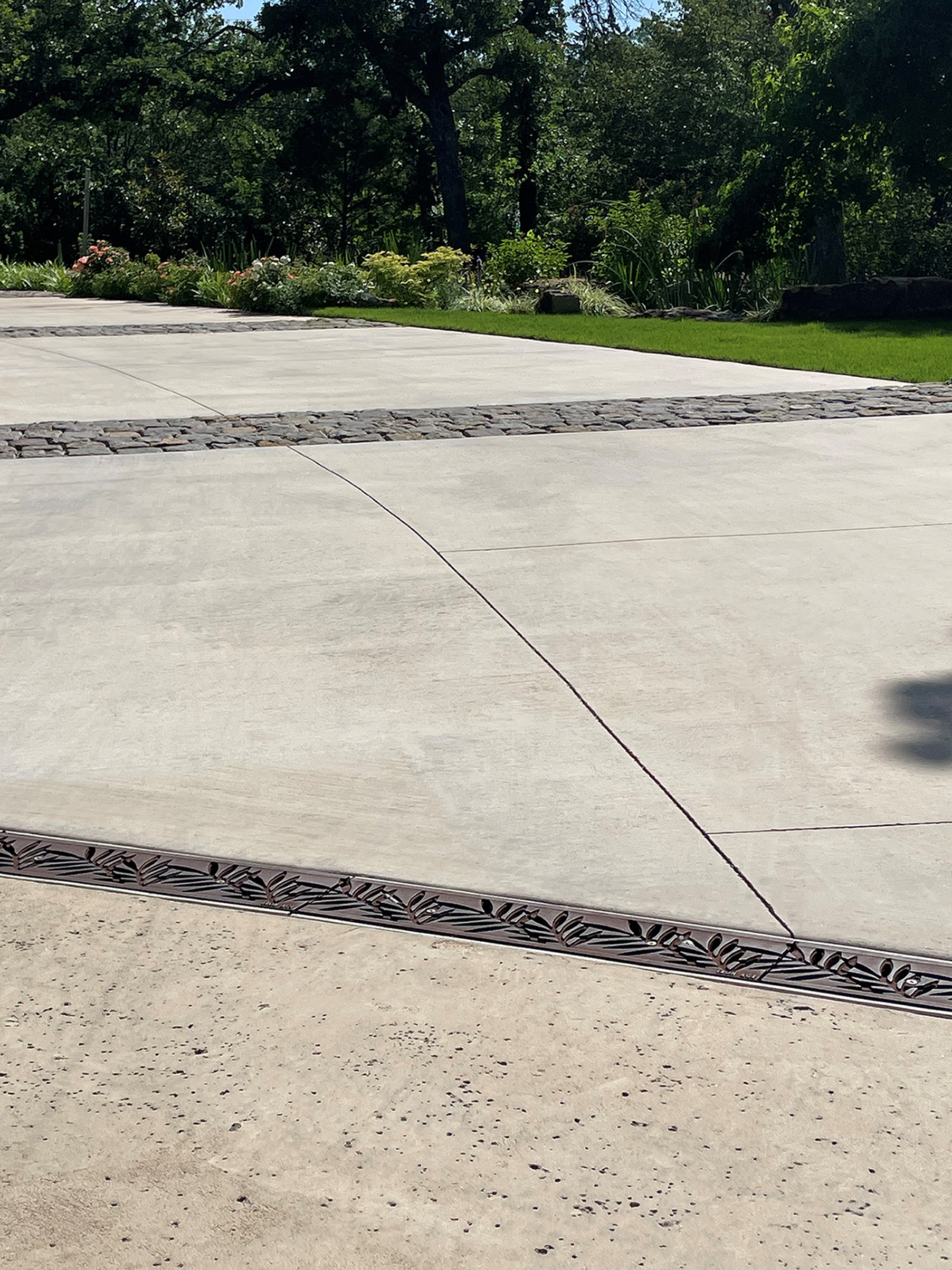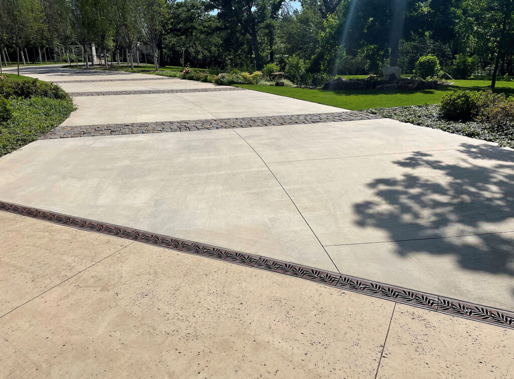 Locust 6″ x 24″ trench grate, raw cast ductile iron. DESIGN: Laurie Keffer, Landscape Architect. PROJECT: Residential driveway. LOCATION: Edmond, OK.