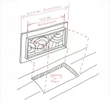 Choosing the right size register cover starts with measuring the opening—not the existing cover. Iron Age register cover sizes are based on the inside dimensions of the opening in your floor, wall, or ceiling.